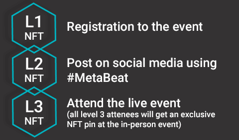 Every registrant will get an exclusive MetaBeat NFT that will evolve as you interact with social media and attend the event.